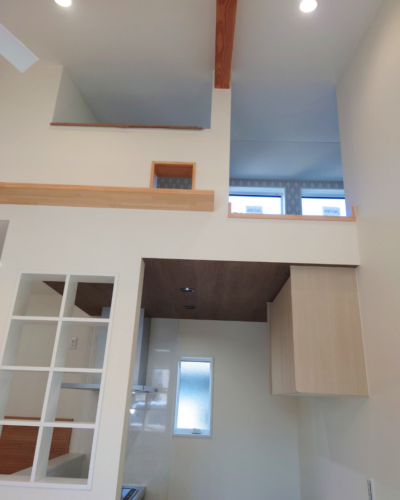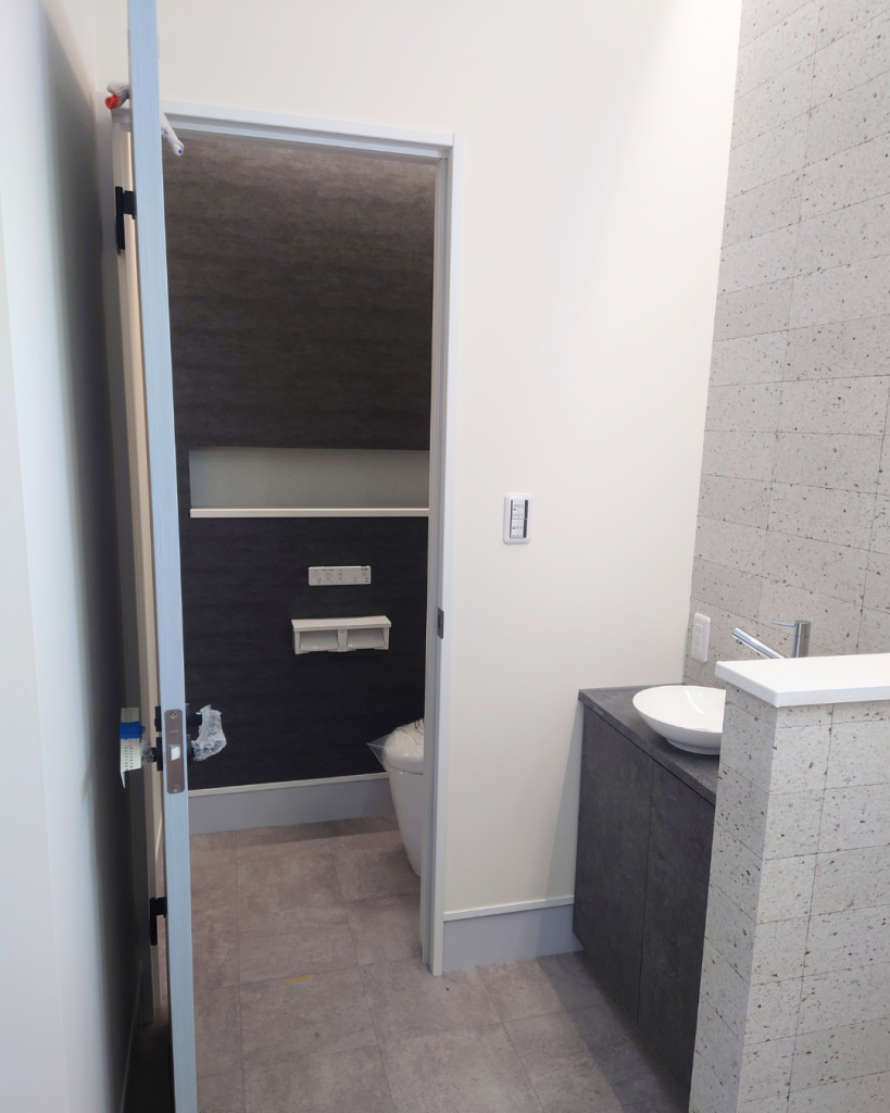 クロスが終わり、トイレ、ちいさなキッチンや照明、可動棚、他進んでおります♬